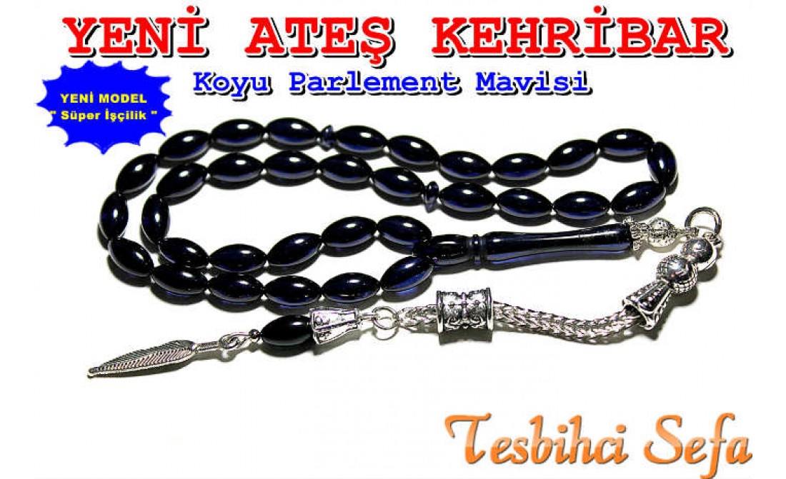AteÅŸ Kehribar Tesbih - Koyu Parlement Mavisi