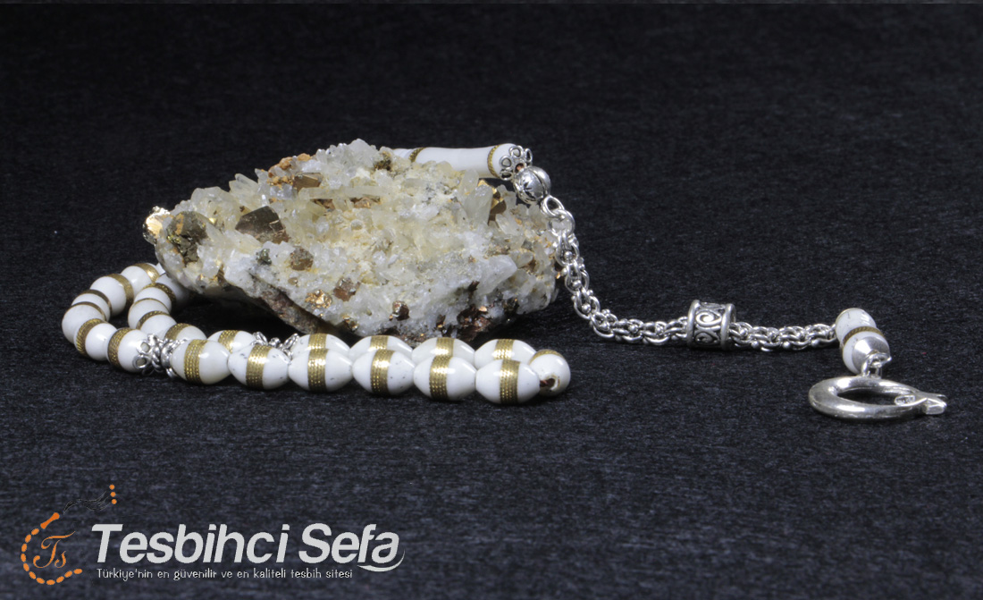 Tesbih deve kemiği pilinç işlemeli ve gümüş aksesuarlı güzel bir tasarımdır.