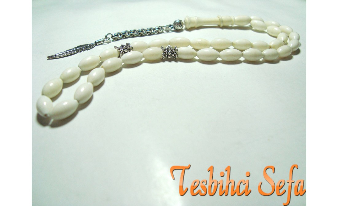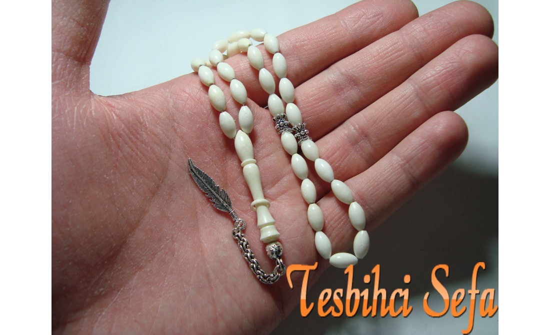 %100 Deve kemiğinden yapılmış harika bir kemik tesbih.Tesbih tamamen el yapımıdır.Tesbihde kullandığımız aparatlar komple 925.ayar saf gümüştür. " Tesbihci Sefa " |