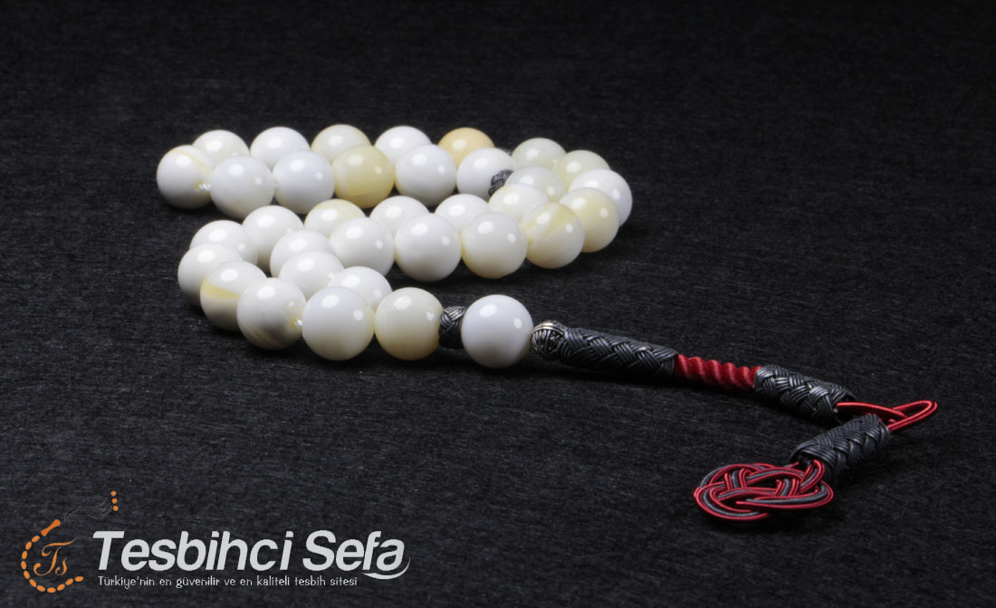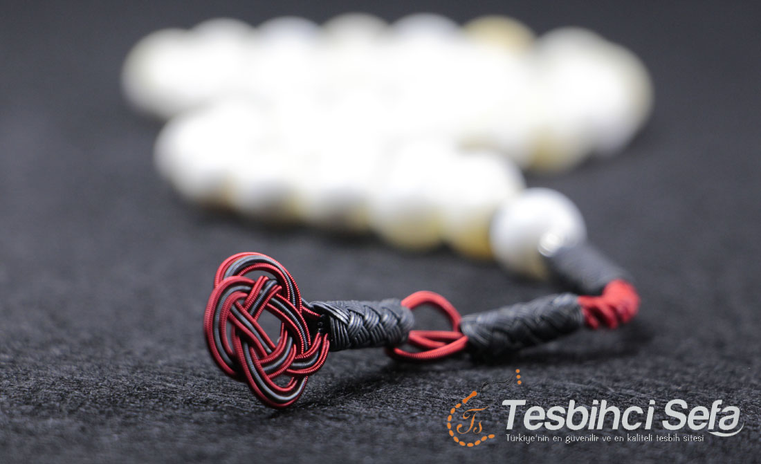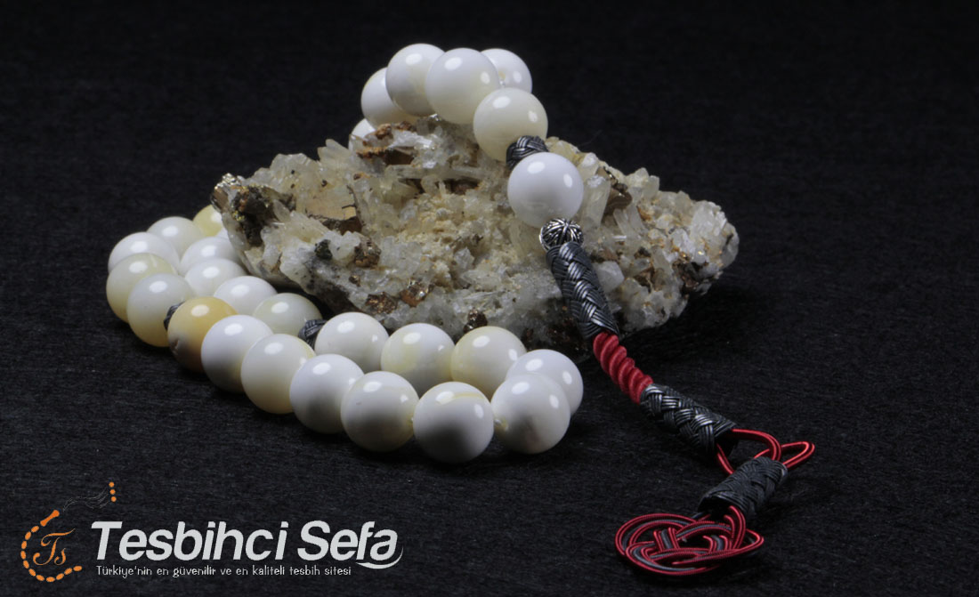 Tesbih sedef taşları kullanılarak hazılanmıştır.Tesbihde kullandığımız ara malzemeler ve püskül 1.000 ayar saf gümüşten yapılan kazaz püsküldür.İster kendinize ister değer verdiğiniz kişilere düşünebileceğiniz çok şık bir tesbih.