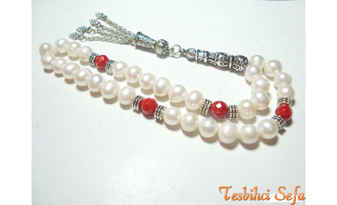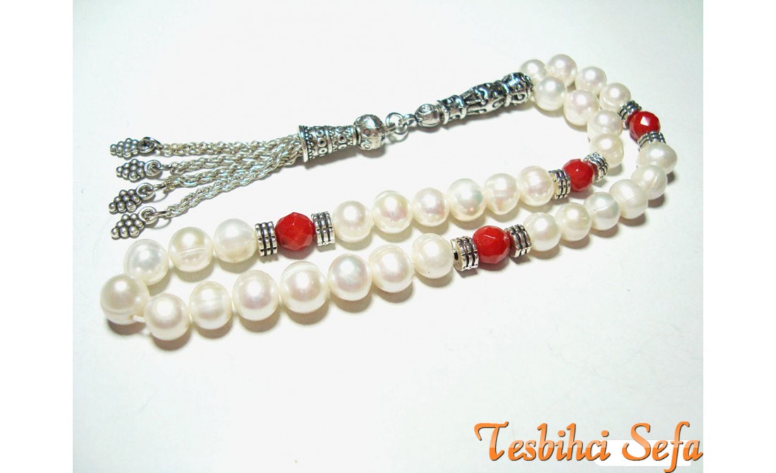 %100 HAKİKİ İNCİ ve MERCAN TAŞLARLA TASARLANMIŞ ÖZEL BİR TESBİH.TESBİHDE KULLANDIĞIMIZ PÜSKÜL,KAPAMA,İMAME VE ARA APARATLAR 925 AYAR SAF GÜMÜŞ KAPLAMASI YAPILMIŞTIR.KESİNLIKLE KARARMA YAPMAZ.BİRİNCİ SINIF AKSESUARLARLA KOMBİNE YAPILMIŞTIR. |