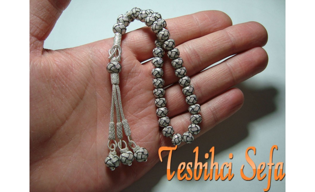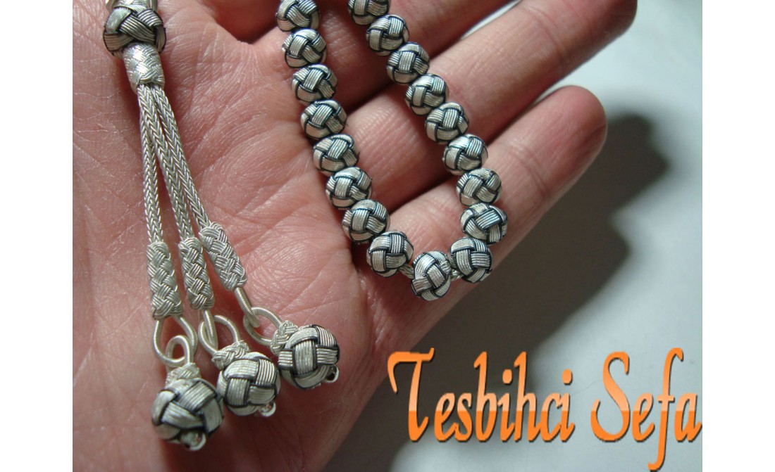 Kazzaz tesbih... Bence bu tesbihi yapım aşamasında görmeniz gerekiyor.Burada ne kadar anlatsam dahi inanın o emeği cümlelerle ifade etmek mümkün değil.El emeği göz nuru.Yaklaşık olarak yapımı bir hafta sürüyor.Tamamı ipi dahil 1000 ayar saf gümüştür. " Tesbihci Sefa " |