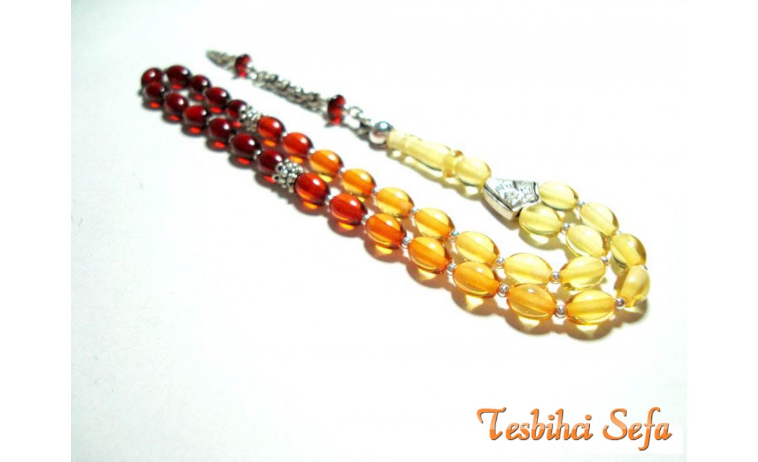 Gümüş Aksesuarlı Kehribar Tesbih