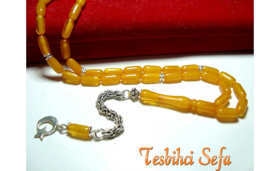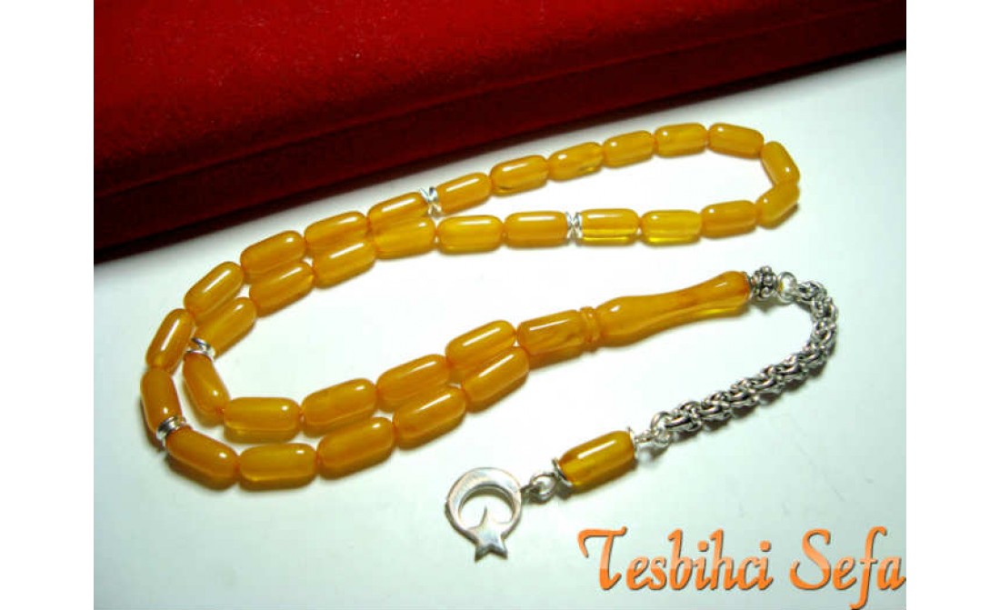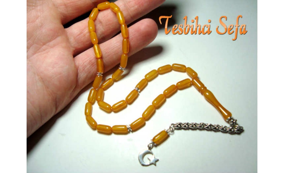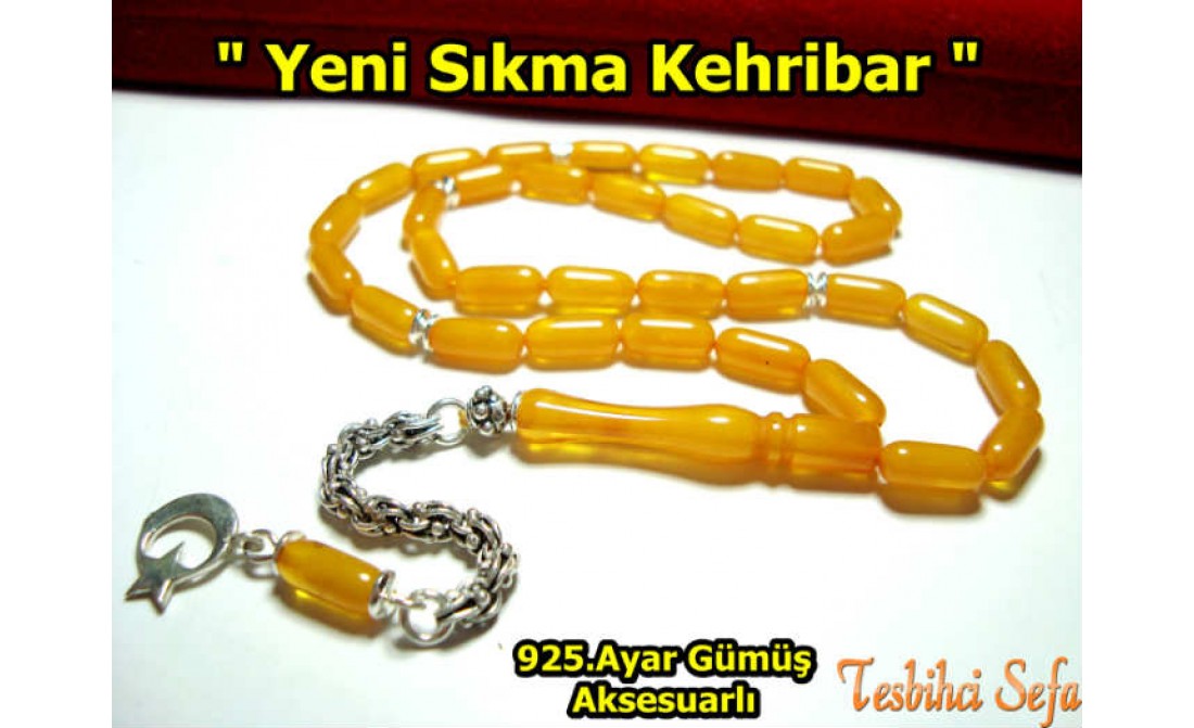 Tesbihde kullandığımız tüm aksesuarlar komple 925.ayar saf gümüştür. Birazcık Kehribar'dan Bahsedelim Kehribar,çoğumuzun aşina olduğu ağaç üzerindeki reçinenin fosilleşmiş halidir. Çoğunlukla kozalaklı ağaçların reçinesinden oluşmasının yanında tropikal çiçekli ağaçlarda da oluştuğu gözlemlenmektedir.Bu ağaç reçineleri kendilerini salgılayan ağaçla birlikte veya tek başına lagün,delta veya deniz ortamına taşınmaktadır.Milyonlarca sene boyunca bu ortama taşınmış,bazen yüzlerce metre kalınlığa ulaşmış tabakaların altında kalan reçine geçen bu zaman boyunca basınç ve sıcaklık etkenleriyle birlikte sertleşerek kehribara dönüşür. Kehribarın oluşum süresi basınç,sıcaklık ve geçen zamanla alakalıdır.Yeterli basınç ve sıcaklıkta bulunmayan reçine tam anlamıyla kehribar kıvamına gelemez,copal adı verilen tam olgunlaşmamış kehribar oluşur. " Tesbihci Sefa " |