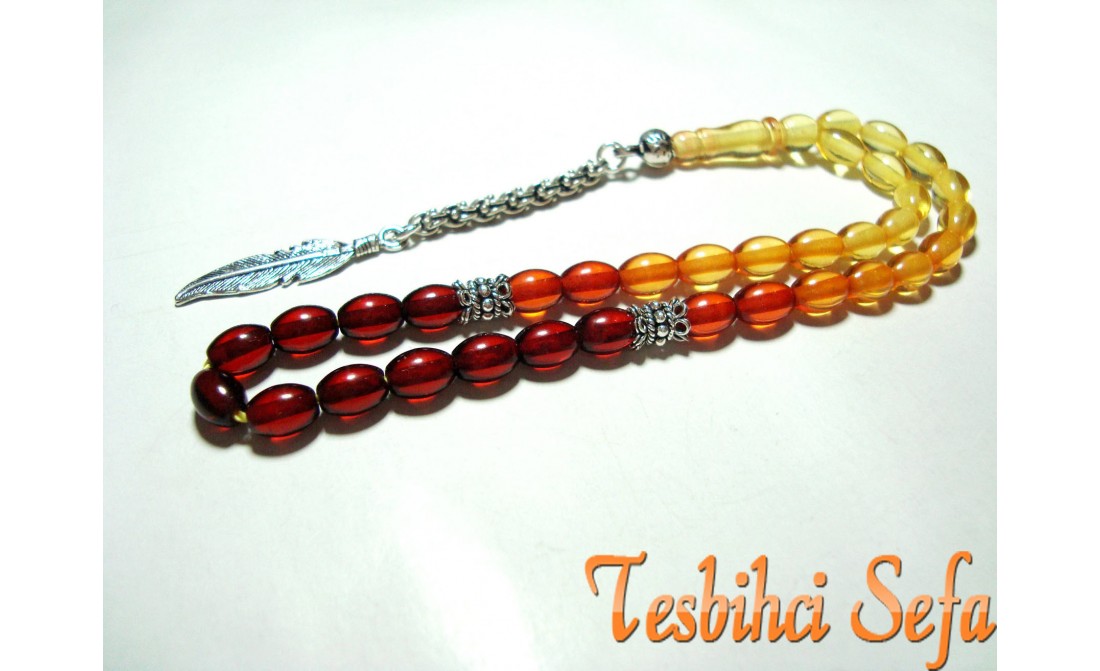 %100 Orjinal damla kehribar.Adı üzerinde " kehribar " bence anlatılmaz yaşanır.Tesbihde kullandığımız tüm aksesuarlar komple 925.ayar saf gümüştür. Birazcık Kehribar'dan Bahsedelim Kehribar,çoğumuzun aşina olduğu ağaç üzerindeki reçinenin fosilleşmiş halidir. Çoğunlukla kozalaklı ağaçların reçinesinden oluşmasının yanında tropikal çiçekli ağaçlarda da oluştuğu gözlemlenmektedir.Bu ağaç reçineleri kendilerini salgılayan ağaçla birlikte veya tek başına lagün,delta veya deniz ortamına taşınmaktadır.Milyonlarca sene boyunca bu ortama taşınmış,bazen yüzlerce metre kalınlığa ulaşmış tabakaların altında kalan reçine geçen bu zaman boyunca basınç ve sıcaklık etkenleriyle birlikte sertleşerek kehribara dönüşür. Kehribarın oluşum süresi basınç,sıcaklık ve geçen zamanla alakalıdır.Yeterli basınç ve sıcaklıkta bulunmayan reçine tam anlamıyla kehribar kıvamına gelemez,copal adı verilen tam olgunlaşmamış kehribar oluşur. " Tesbihci Sefa " |