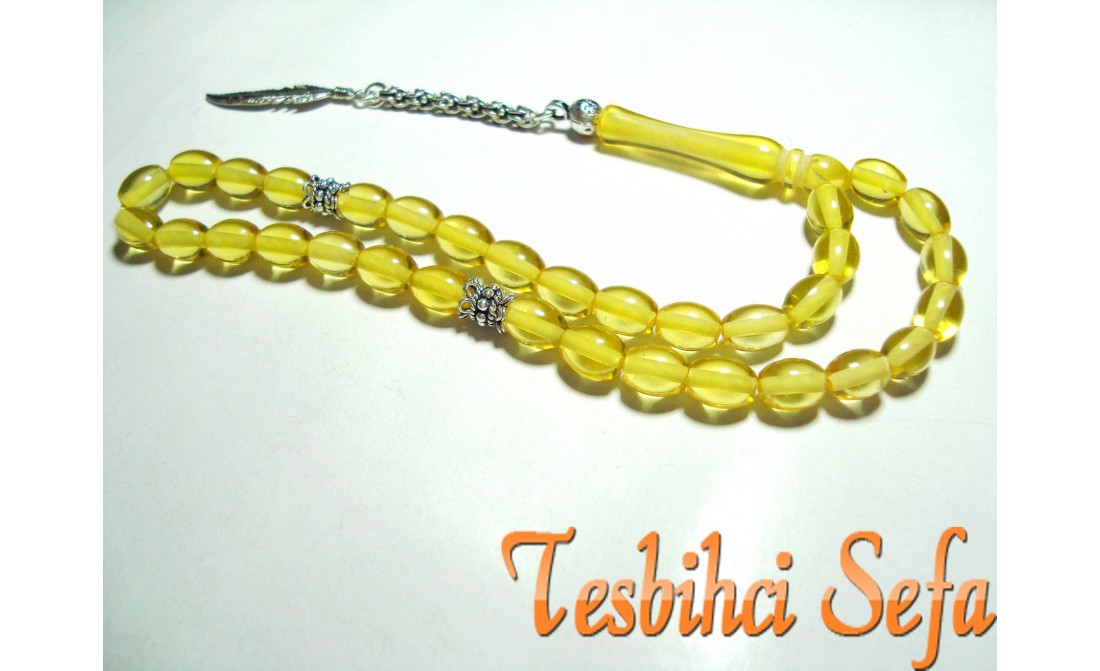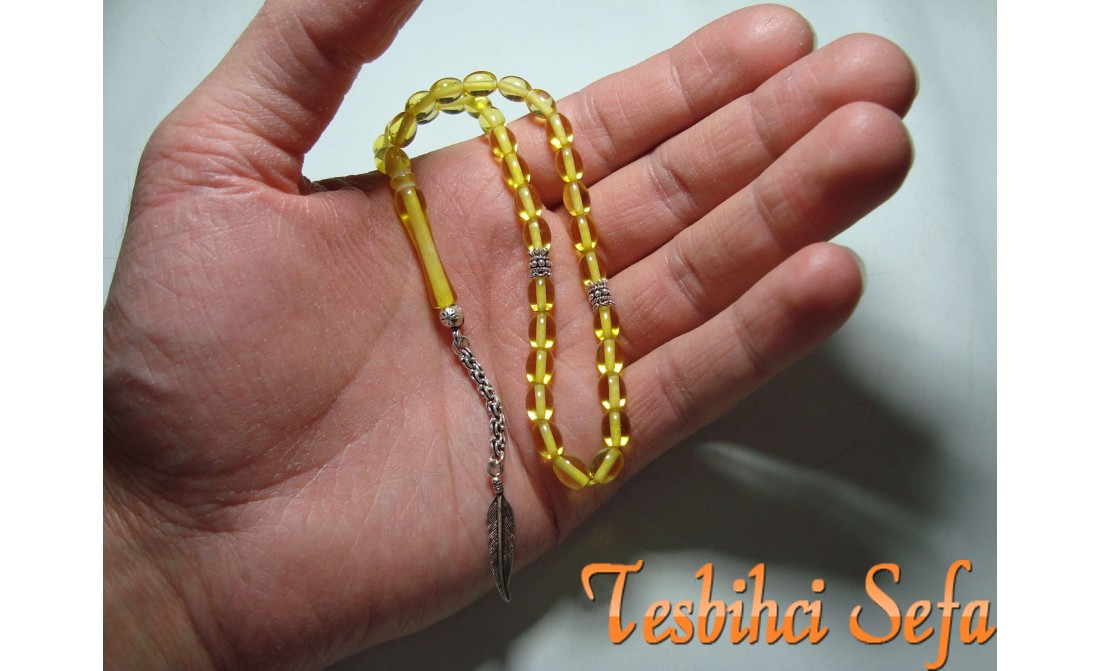 Şeffaf renk kehribar tesbih.Adı üzerinde " kehribar " bence anlatılmaz yaşanır.Tesbihde kullandığımız tüm aksesuarlar komple 925.ayar saf gümüştür. Birazcık Kehribar'dan Bahsedelim Kehribar,çoğumuzun aşina olduğu ağaç üzerindeki reçinenin fosilleşmiş halidir. Çoğunlukla kozalaklı ağaçların reçinesinden oluşmasının yanında tropikal çiçekli ağaçlarda da oluştuğu gözlemlenmektedir.Bu ağaç reçineleri kendilerini salgılayan ağaçla birlikte veya tek başına lagün,delta veya deniz ortamına taşınmaktadır.Milyonlarca sene boyunca bu ortama taşınmış,bazen yüzlerce metre kalınlığa ulaşmış tabakaların altında kalan reçine geçen bu zaman boyunca basınç ve sıcaklık etkenleriyle birlikte sertleşerek kehribara dönüşür. Kehribarın oluşum süresi basınç,sıcaklık ve geçen zamanla alakalıdır.Yeterli basınç ve sıcaklıkta bulunmayan reçine tam anlamıyla kehribar kıvamına gelemez,copal adı verilen tam olgunlaşmamış kehribar oluşur. " Tesbihci Sefa " |