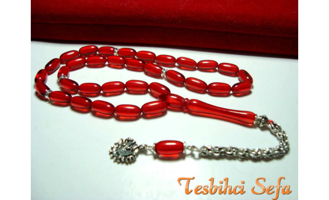 Tesbihde kullandığımız tüm aksesuarlar komple 925.ayar saf gümüştür. Birazcık Kehribar'dan Bahsedelim Kehribar,çoğumuzun aşina olduğu ağaç üzerindeki reçinenin fosilleşmiş halidir. Çoğunlukla kozalaklı ağaçların reçinesinden oluşmasının yanında tropikal çiçekli ağaçlarda da oluştuğu gözlemlenmektedir.Bu ağaç reçineleri kendilerini salgılayan ağaçla birlikte veya tek başına lagün,delta veya deniz ortamına taşınmaktadır.Milyonlarca sene boyunca bu ortama taşınmış,bazen yüzlerce metre kalınlığa ulaşmış tabakaların altında kalan reçine geçen bu zaman boyunca basınç ve sıcaklık etkenleriyle birlikte sertleşerek kehribara dönüşür. Kehribarın oluşum süresi basınç,sıcaklık ve geçen zamanla alakalıdır.Yeterli basınç ve sıcaklıkta bulunmayan reçine tam anlamıyla kehribar kıvamına gelemez,copal adı verilen tam olgunlaşmamış kehribar oluşur. " Tesbihci Sefa " |