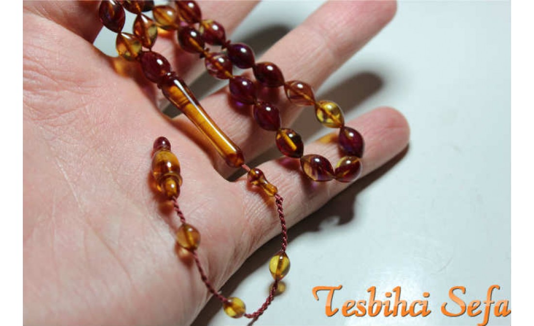 -->Tesbih boyut olarak en ideal boyuttadır.İster günlük isterseniz koleksiyonluk harika bir tesbihdir. Birazcık Kehribar'dan Bahsedelim Kehribar,çoğumuzun aşina olduğu ağaç üzerindeki reçinenin fosilleşmiş halidir. Çoğunlukla kozalaklı ağaçların reçinesinden oluşmasının yanında tropikal çiçekli ağaçlarda da oluştuğu gözlemlenmektedir.Bu ağaç reçineleri kendilerini salgılayan ağaçla birlikte veya tek başına lagün,delta veya deniz ortamına taşınmaktadır.Milyonlarca sene boyunca bu ortama taşınmış,bazen yüzlerce metre kalınlığa ulaşmış tabakaların altında kalan reçine geçen bu zaman boyunca basınç ve sıcaklık etkenleriyle birlikte sertleşerek kehribara dönüşür. Kehribarın oluşum süresi basınç,sıcaklık ve geçen zamanla alakalıdır.Yeterli basınç ve sıcaklıkta bulunmayan reçine tam anlamıyla kehribar kıvamına gelemez,copal adı verilen tam olgunlaşmamış kehribar oluşur. " Tesbihci Sefa " |