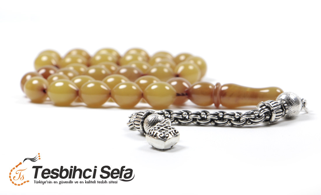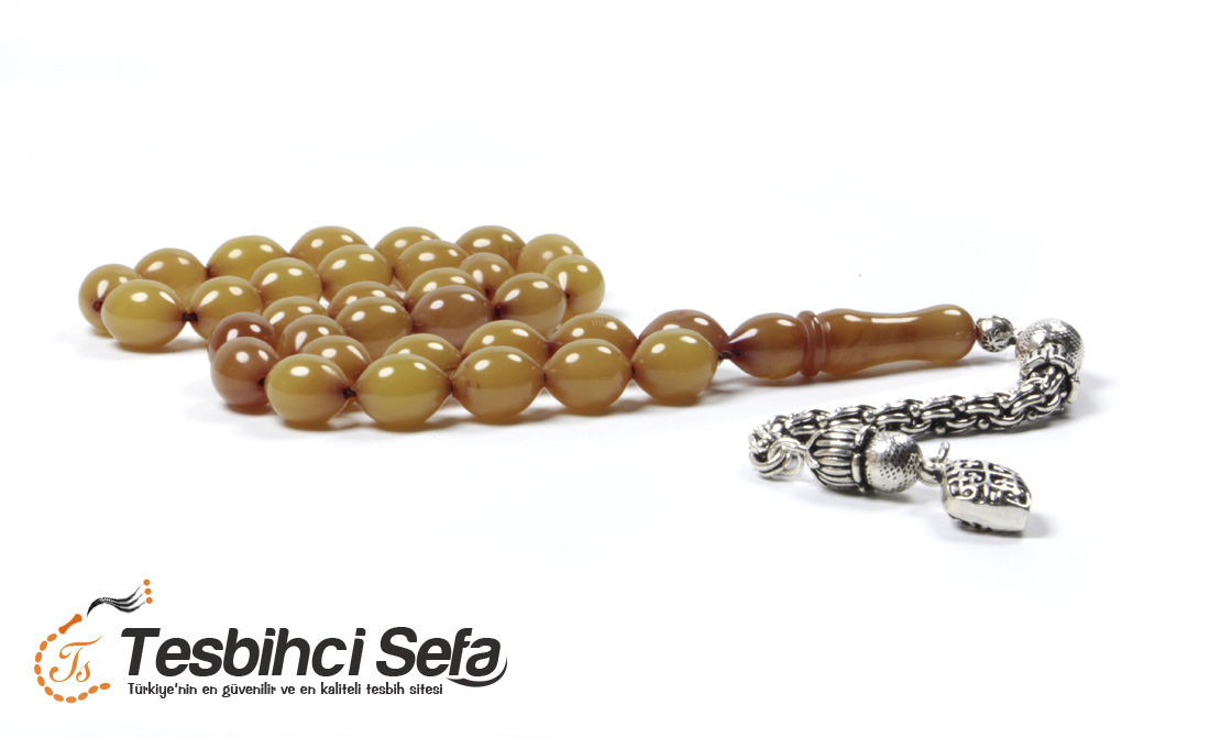 Tesbih osmanlı tesbihlerin formunda yapılarak tamamı usta işi özel bir çalışmadır.Tesbih çekildikçe bordomsu rengi alacaktır.