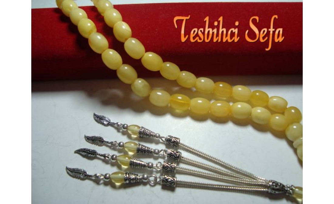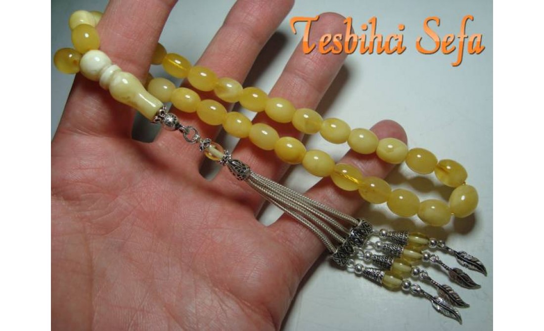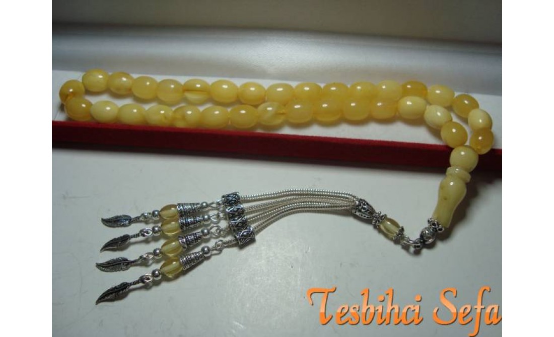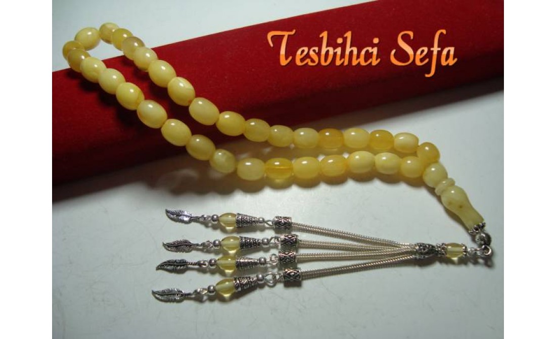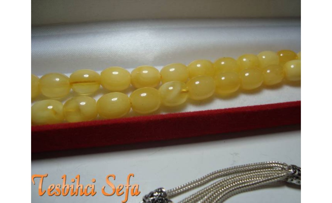 8*10.mm Boyutunda süper bir damla kehribar.. Tesbih %100 has damla kehribarden yapılmıştır. Tesbihi kullanıp çektikçe kendi has kokusunu hissedeceksiniz.Tesbihin kokusu tesbih var oldukça gitmeyecektir. Eğer sizde orjinal bir damla kehribarım olsun diyorsanız bu parça kaçırılmaz... Birazcık Kehribar'dan Bahsedelim Kehribar,çoğumuzun aşina olduğu ağaç üzerindeki reçinenin fosilleşmiş halidir. Çoğunlukla kozalaklı ağaçların reçinesinden oluşmasının yanında tropikal çiçekli ağaçlarda da oluştuğu gözlemlenmektedir.Bu ağaç reçineleri kendilerini salgılayan ağaçla birlikte veya tek başına lagün,delta veya deniz ortamına taşınmaktadır.Milyonlarca sene boyunca bu ortama taşınmış,bazen yüzlerce metre kalınlığa ulaşmış tabakaların altında kalan reçine geçen bu zaman boyunca basınç ve sıcaklık etkenleriyle birlikte sertleşerek kehribara dönüşür. Kehribarın oluşum süresi basınç,sıcaklık ve geçen zamanla alakalıdır.Yeterli basınç ve sıcaklıkta bulunmayan reçine tam anlamıyla kehribar kıvamına gelemez,copal adı verilen tam olgunlaşmamış kehribar oluşur. " Tesbihci Sefa " |