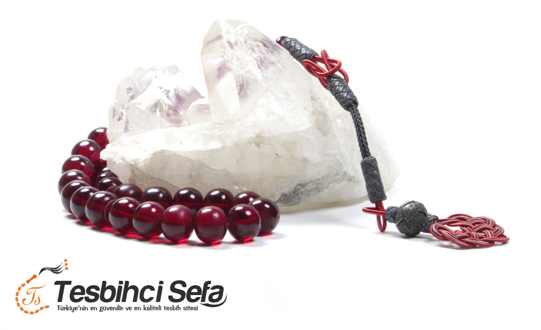 Tesbih kırmızı kazaz püskülle kombine yapılmıştır.