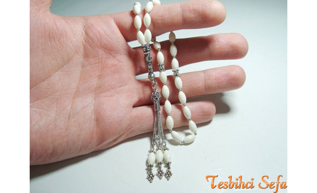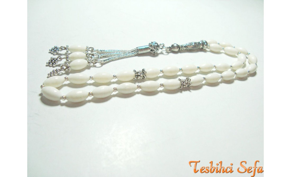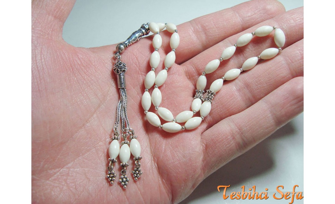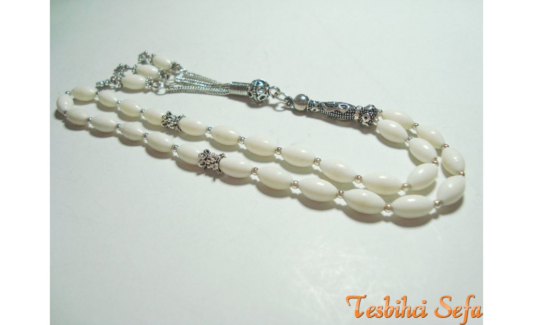 %100 Deve kemiğinden yapılmış harika bir kemik tesbih.Tesbih tamamen el yapımıdır.Tesbihde kullandığımız aparatlar komple 925.ayar saf gümüştür. " Tesbihci Sefa " |