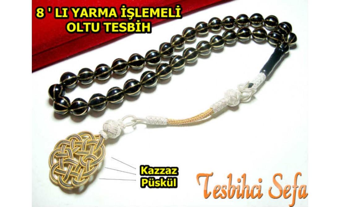 9.mm Gümüş yarma işlemeli oltu tesbih . . . Tesbih tamamen el yapımı özel tesbihlerdendir... Tesbihin tanelerinin üzerindeki pirinç işlemeler adet olarak her tanede 8.adet pirinç yarma işleme bulunmaktadır. Tesbihdeki işlemeler delikten deliğe dediğimiz en hassas işçilik uygulanmıştır.Yarma işlemeler tesbih tanesinin bir deliğinden başlayarak diğer taraftaki deliğin uç kısmında bitmektedir.Yarma işlemelerde en dikkat edilmesi gereken husus budur. Tesbih sıfır hatayla üretilmiştir.İsterseniz koleksiyonunuza katmak için , isterseniz elinizde kullanmak için , isterseniz sevdiklerinizi mutlu yapmak için kaçırılmayacak kadar güzel bir tesbihdir. Bu tesbihi satın alan kişi bence çok şanslı.... Tesbihde kullandığımız püskül kazzaz dediğimiz tamamen el yapımı olan özel bir modeldir... Tesbihi kendi orjinal kadife kutusunda göndereceğiz... OLTU TAŞI : Oltu taşı cekildikçe pırıl pırıl parlayan çok özel bir doğal taşdır.İnsan sağlığına çok önemli faydaları vardır.Örneğin sinire ve strese iyi gelmekle beraber insana huzur verir... " Tesbihci Sefa " |