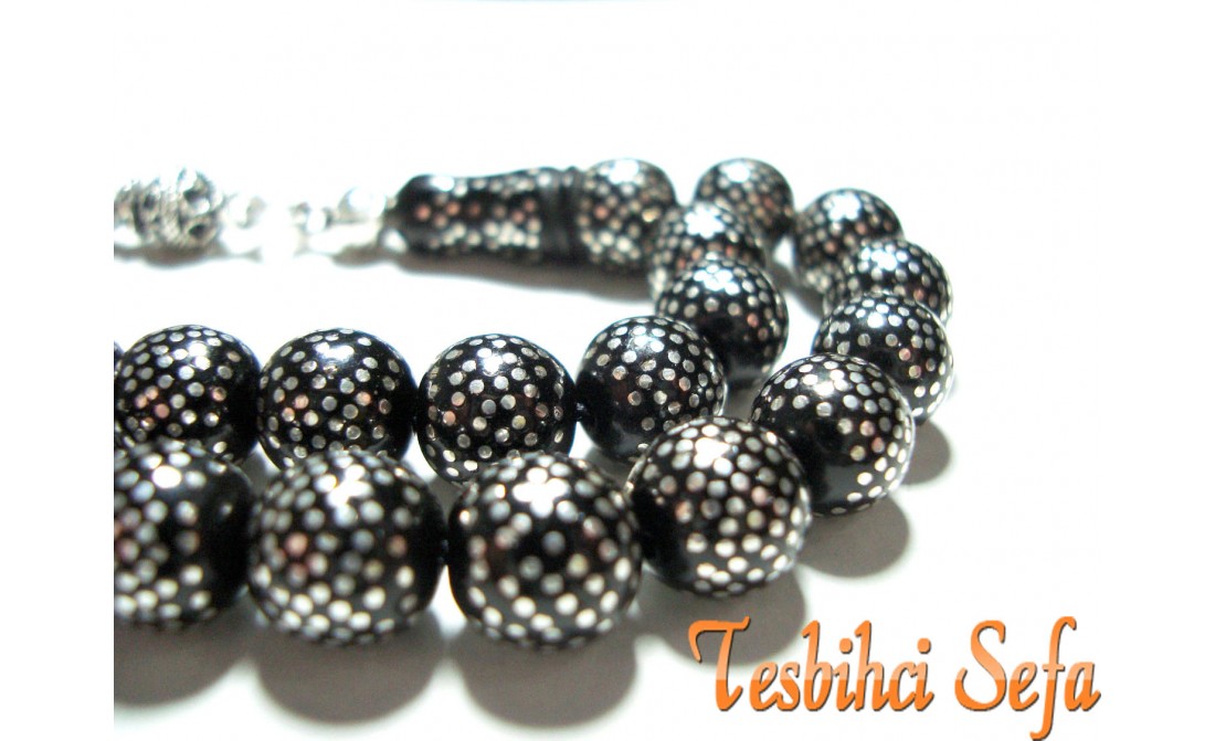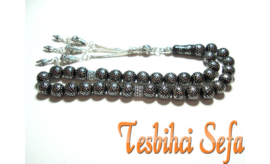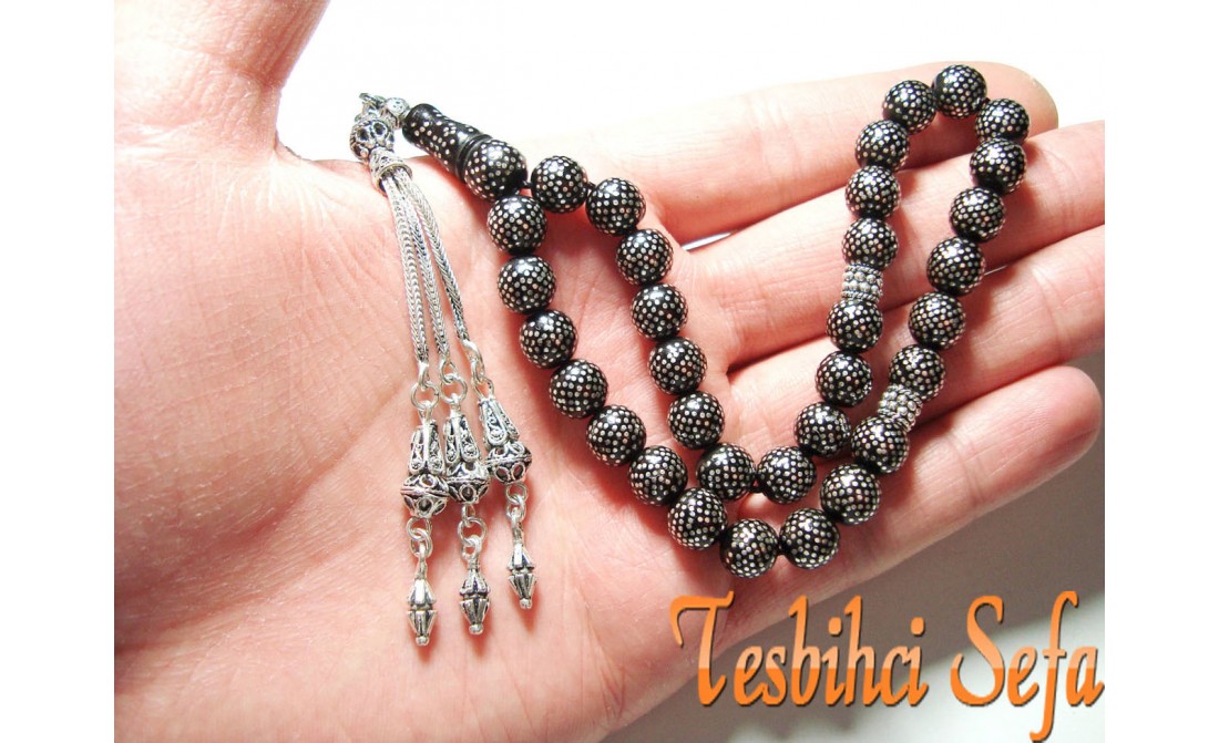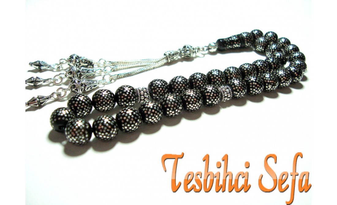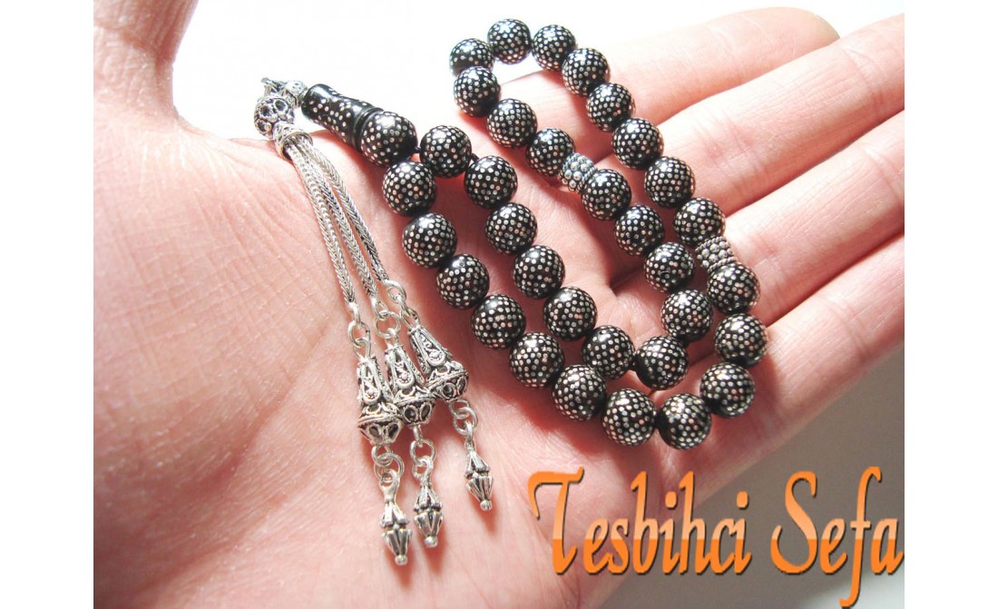 Tesbihin üzerinde yaklaşık olarak 14.000 adet gümüş nokta işlemesi vardır.Tesbihin püskülüde tamamen el yapımıdır.Resimlerde görüldüğü gibi emek ve işçilik ortada. " Tesbihci Sefa " |