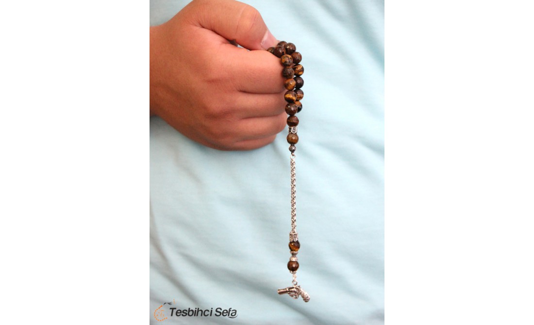 Kaplan gözü taşı kullanılarak hazırlanan tesbihimizin imameside kendi taşından tasarlanarak farklı bir kombinasyon yapılmıştır.