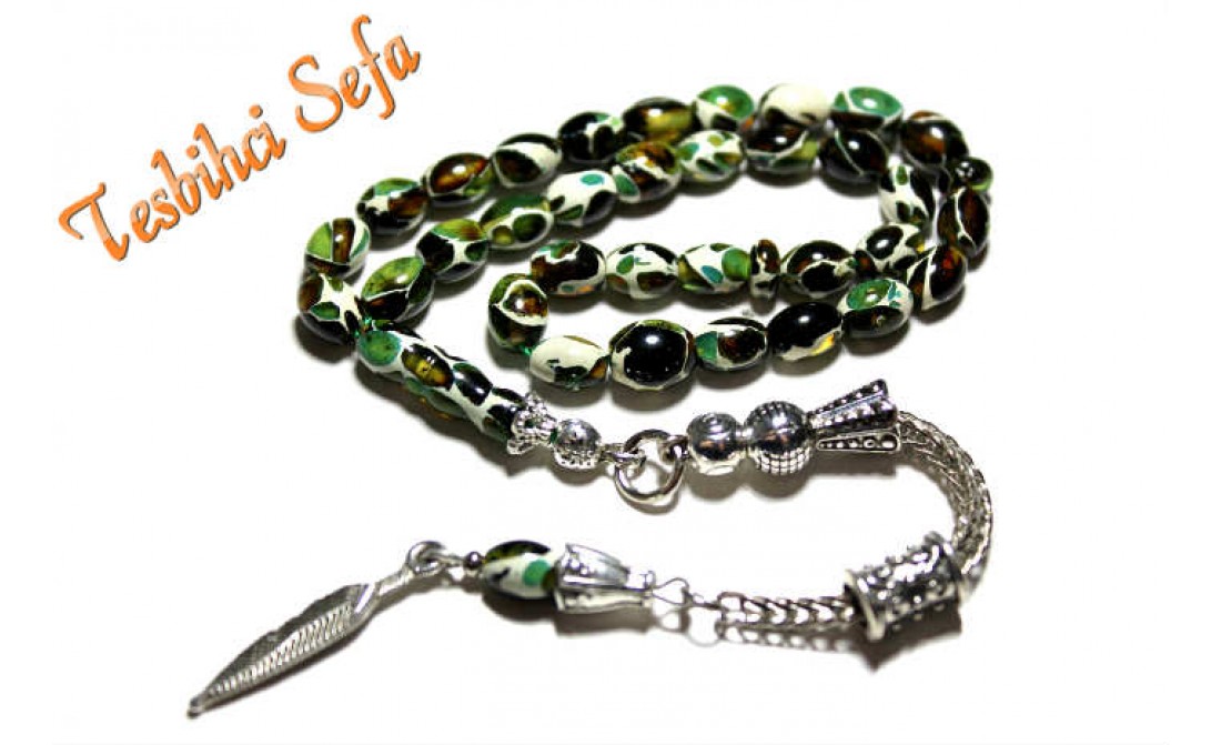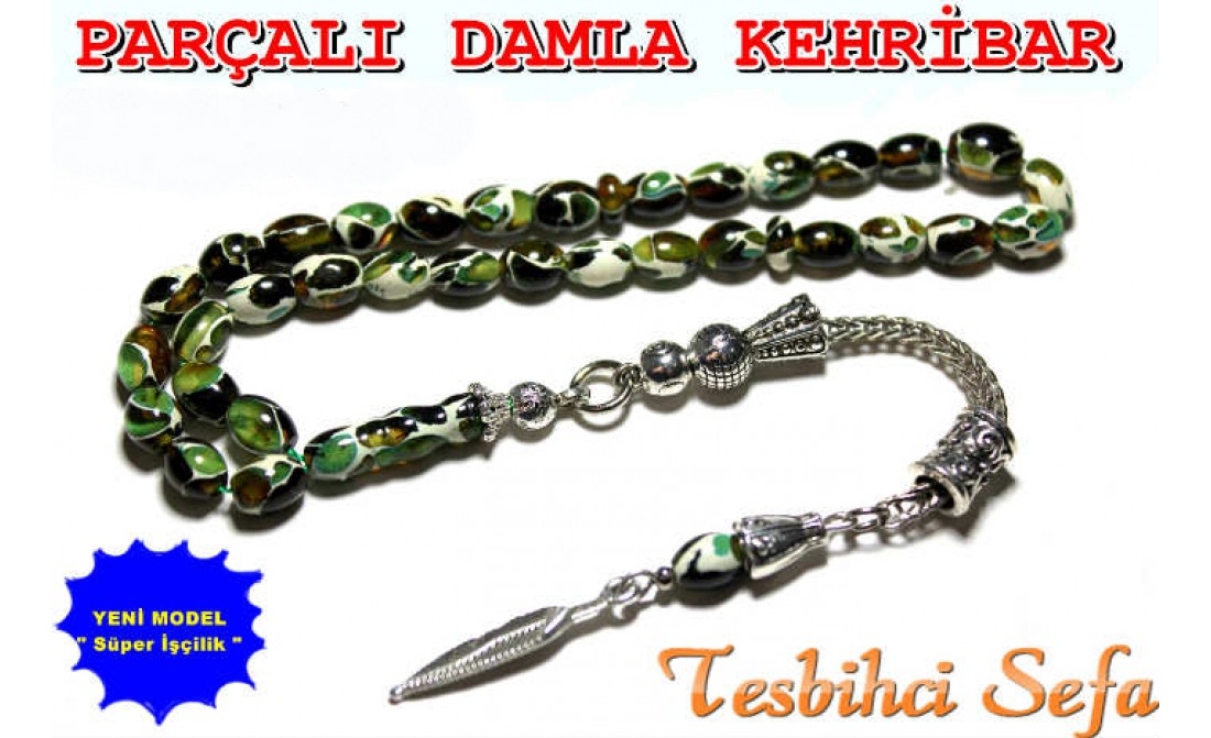 Tesbih parçalı kehribardır.Bu modeli komando modelide denilmektedir.Tesbih boyuk olarak ufak boydur.Çekimi ve kullanımı son derece güzeldir. Tesbihde kullandığımız püskül gümüş kaplamadır (gümüş değildir). Birazcık Kehribar'dan Bahsedelim Kehribar,çoğumuzun aşina olduğu ağaç üzerindeki reçinenin fosilleşmiş halidir. Çoğunlukla kozalaklı ağaçların reçinesinden oluşmasının yanında tropikal çiçekli ağaçlarda da oluştuğu gözlemlenmektedir.Bu ağaç reçineleri kendilerini salgılayan ağaçla birlikte veya tek başına lagün,delta veya deniz ortamına taşınmaktadır.Milyonlarca sene boyunca bu ortama taşınmış,bazen yüzlerce metre kalınlığa ulaşmış tabakaların altında kalan reçine geçen bu zaman boyunca basınç ve sıcaklık etkenleriyle birlikte sertleşerek kehribara dönüşür. Kehribarın oluşum süresi basınç,sıcaklık ve geçen zamanla alakalıdır.Yeterli basınç ve sıcaklıkta bulunmayan reçine tam anlamıyla kehribar kıvamına gelemez,copal adı verilen tam olgunlaşmamış kehribar oluşur. " Tesbihci Sefa " |
