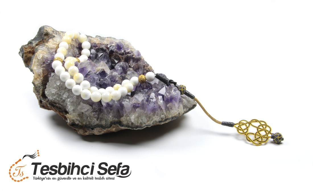 Tesbih doğal sedef taşından oluşan çok şık bir tasarımdır.