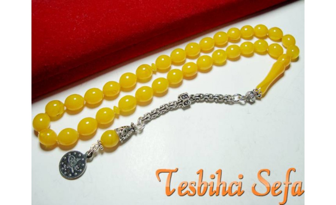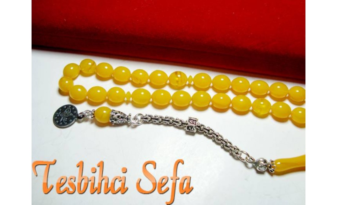 7*9.mm Boyutunda süper bir sıkma kehribar.. Tesbih %100 orjinal olup yeni tornada yapılmıştır. Tesbih boyut olarak ideal bir boyut olan 7*9.mm ölçüsündedir.. Tesbihde kullanılan tüm aksesuarlar komple 925.ayar saf gümüştür... Birazcık Kehribar'dan Bahsedelim Kehribar,çoğumuzun aşina olduğu ağaç üzerindeki reçinenin fosilleşmiş halidir. Çoğunlukla kozalaklı ağaçların reçinesinden oluşmasının yanında tropikal çiçekli ağaçlarda da oluştuğu gözlemlenmektedir.Bu ağaç reçineleri kendilerini salgılayan ağaçla birlikte veya tek başına lagün,delta veya deniz ortamına taşınmaktadır.Milyonlarca sene boyunca bu ortama taşınmış,bazen yüzlerce metre kalınlığa ulaşmış tabakaların altında kalan reçine geçen bu zaman boyunca basınç ve sıcaklık etkenleriyle birlikte sertleşerek kehribara dönüşür. Kehribarın oluşum süresi basınç,sıcaklık ve geçen zamanla alakalıdır.Yeterli basınç ve sıcaklıkta bulunmayan reçine tam anlamıyla kehribar kıvamına gelemez,copal adı verilen tam olgunlaşmamış kehribar oluşur. " Tesbihci Sefa " |