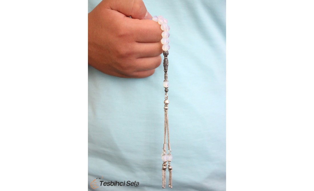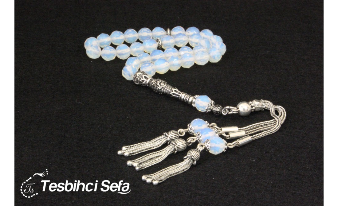 Aytaşı tesbihimiz fasetli yanı işlenmiş taş olarak tasarlanmıştır.Tesbihde kullanılan tüm aksesurlar komple 925.ayar gümüş olup tesbih özel olarak tasarlanmıştır.